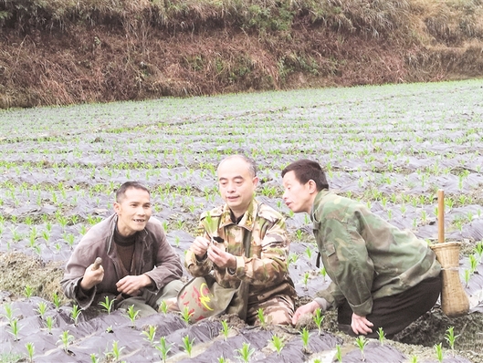 黎平县平底村驻村第一书记吴宇佳(中)给农户讲授百合的种植管理技术。 周志光 摄