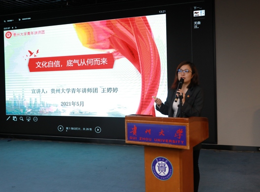 宣讲活动是贵州大学结合党史学习教育和“牢记殷切嘱托、忠诚干净担当、喜迎建党百年”专题教育开展的,重点面向全校青年常态化开展理论宣讲,以进一步推进马克思主义中国化、时代化、青年化,做好青年思想政治引领,推动党的青年理论武装工作创新发展。宣讲分为五个专题——信仰之光、光辉历程、美丽中国、青年担当、贵大力量,着力讲好“四史”发展进程中构建的精神谱系、马克思主义中国化最新成果特别是习近平新时代中国特色社会主义思想;讲好中国共产党带领全国人民不懈奋斗、砥砺前行的辉煌历程;讲好新时代中国的发展现状和未来前景;讲好在不同时期涌现的青年的奋斗故事、奉献故事;讲好贵大各历史发展阶段及新时代贵大人的家国情怀和奋斗精神。