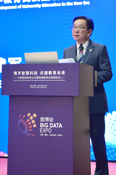 贵州大学副校长邓朝勇以《贵州大学智慧教育探索与实践》为题,从信息技术催生教学变革、智慧教育的特点和趋势、贵州大学的探索实践三个方面进行发言。
