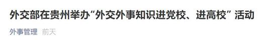 6月8日至9日,外交部外管司、政策司、亚洲司、国际司和老大使组成的工作小组在贵州省委党校(行政学院)、贵州大学成功举办2021年“外交外事知识进党校”、“进高校”活动。