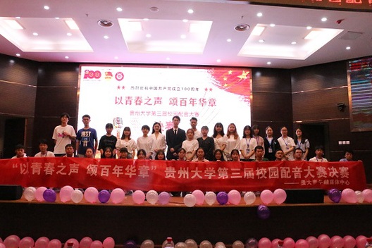 为持续推进党史学习教育和“牢记殷切嘱托、忠诚干净担当、喜迎建党百年”专题教育,引导广大青年坚定理想信念,赓续红色基因,6月9日,由贵州大学团委主办,贵大青年融媒体中心承办的“以青春之声·颂百年华章”贵州大学第三届校园配音大赛举行。校团委副书记(主持工作)刘魁、副书记宋洪庆,新浪贵州旅游频道主编苏苏,贵阳日报传媒集团记者韦鑫,贵州大学大学生宣讲团团长冉诗学,第二届配音大赛获奖者陈雅华、粟星博、龙婷担任评委,贵州大学300余名学生参加。