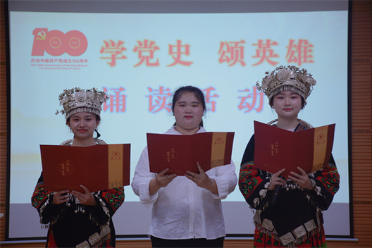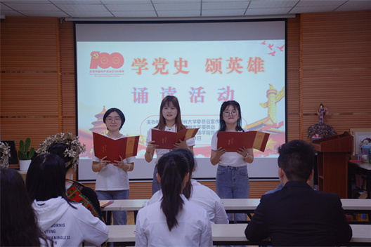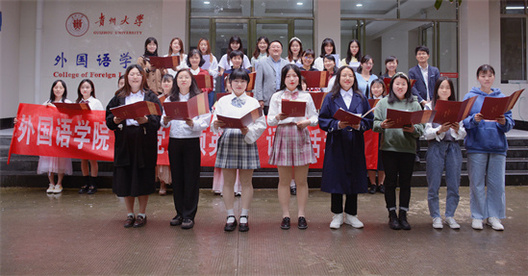 5月21日至5月24日,贵州大学外国语学院举办了“学党史·颂英雄”诵读活动。外国语学院党委书记龙汶,外国语学院院长周杰出席活动,校团委副书记杨乐,外国语学院副院长王晓梅及学院50名师生代表参加活动。