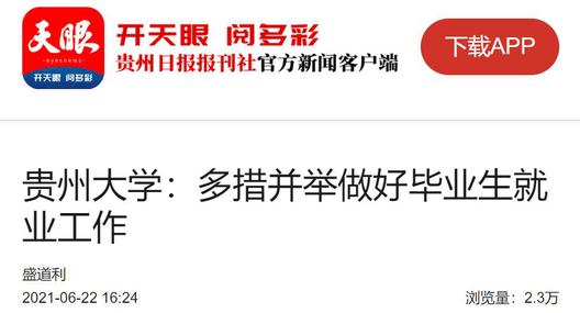 6月22日,记者从贵州大学获悉,今年以来,贵州大学认真学习贯彻习近平总书记视察贵州重要讲话精神,在省委、省政府坚强领导下,始终把毕业生就业工作作为学校工作的重中之重,千方百计确保毕业生充分就业、高质量就业。