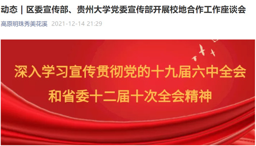 12月13日,区委宣传部、贵州大学党委宣传部建立校地联动工作机制联席座谈会召开。