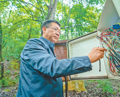 颜伟在长坡岭林场查看生态监测设备。 |