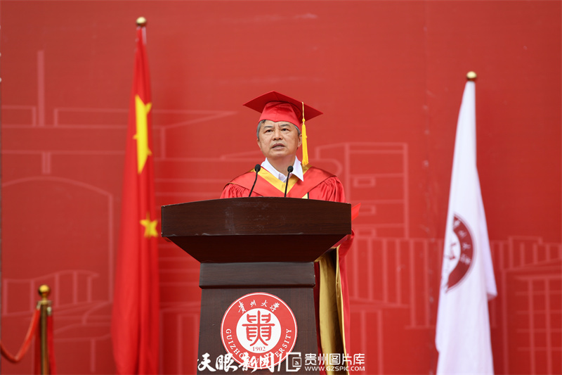 “在今年的毕业生当中,有时代楷模、感动中国年度人物、排雷英雄杜富国同学;有创制绿色农药异唑虫嘧啶,并以1600万元转让给企业的全国高校‘百名研究生党员标兵’, ‘最美大学生’张建同学。还有现代制造技术教育部重点实验室硕士研究生袁建同学,创建专注打造东方美学日用品品牌的公司,研发‘千玉’钢笔,书写出独属于东方的韵律,公司整体营收超2000万;机械工程学院黄思源同学,在创新创业大赛中锻炼自己,获得‘挑战杯’黑科技专项赛道国赛一等奖、省赛一等奖,获省三好学生,贵州大学‘十佳大学生’等荣誉称号;法学院309 寝室的6名同学,学习路上相互鼓励、相互支持,全部保送或考上研究生,‘学霸寝室’称号实至名归。”中国工程院院士、贵州大学校长宋宝安表示,2022届的同学们参与并见证了贵州大学聚焦内涵式发展,驶入发展快车道。