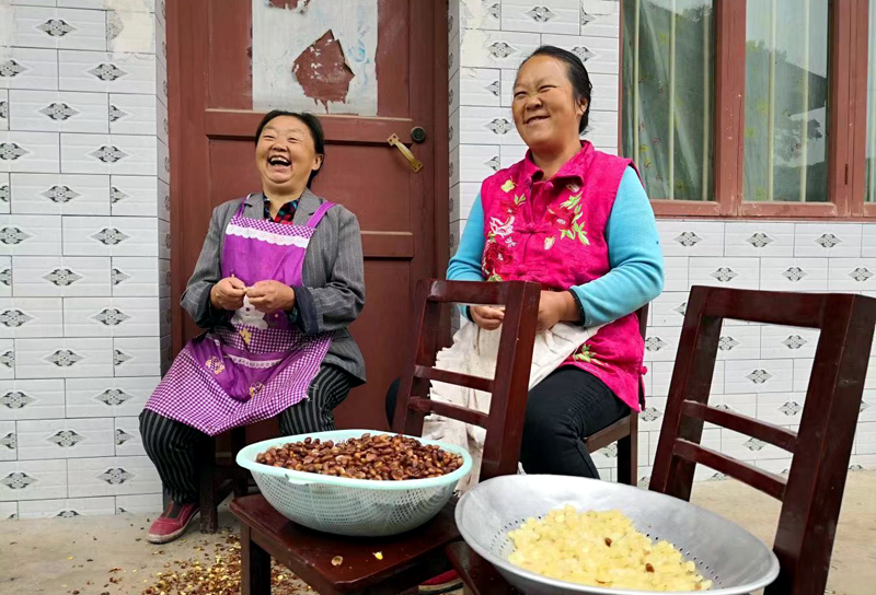 串门剥、带娃娃剥、吃喜酒也剥、放假回来的学生利用假期剥。当地群众“剥着籽、看着娃、挣着钱、养着家”过上了美好生活。