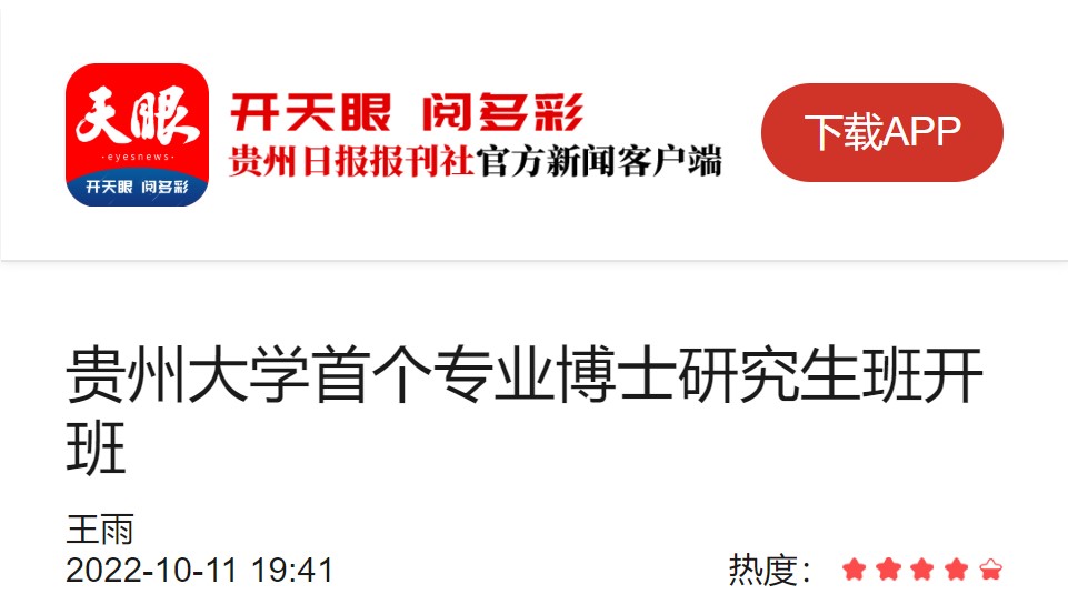 贵州大学副校长李军旗说,希望校院联动,创新学位点管理模式,做到将论文真正写在大地上。“希望各位导师不断扩宽全球视野、提升综合素质、增强社会竞争力,将博士研究生培养成为能够服务国家需求和区域发展的高素质、高水平和高质量人才。希望各位博士研究生新生在贵州大学120周年校庆之际,秉承‘明德至善,博学笃行’的校训,仰望星空立大志,止于至善明大德,博学笃行成大才,脚踏实地担大任,不断克服一个又一个艰难险阻。”
