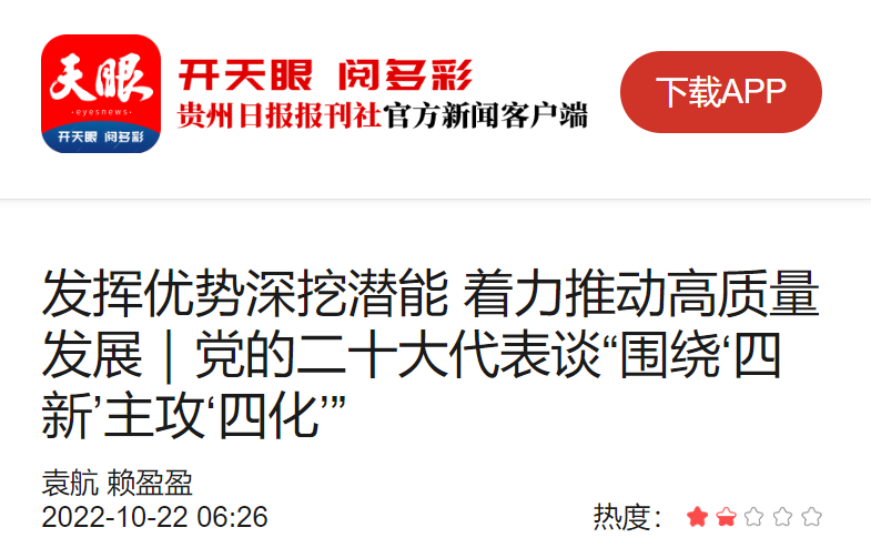 “党的二十大报告提出要加快实施创新驱动发展战略,加快实现高水平科技自立自强,这让我倍感振奋、备受鼓舞。”党的二十大代表,贵州东方世纪科技股份有限公司党支部书记、董事长兼总经理李胜说,“有习近平总书记的掌舵领航,有党和国家的关心支持,我对未来发展充满了信心。”