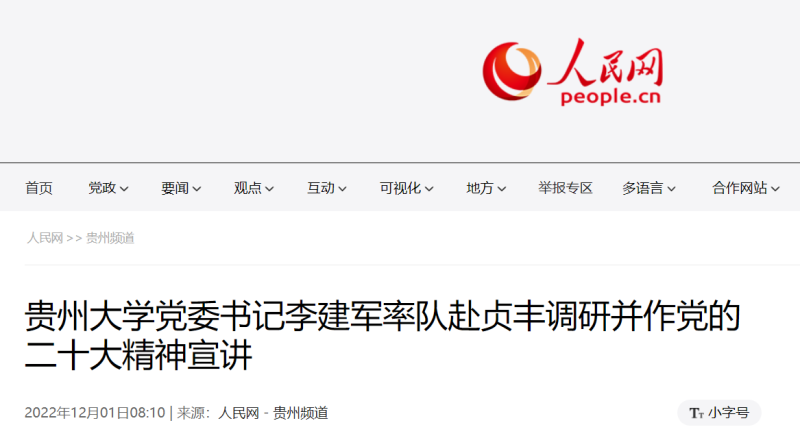 11月29日,贵州大学党委书记李建军率队赴黔西南州贞丰县冬妹村调研指导乡村振兴驻村工作,看望慰问学校派驻贞丰驻村工作队,并作党的二十大精神宣讲。