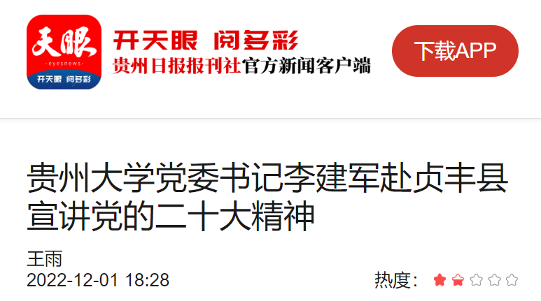李建军表示,在中国式现代化进程中,贵州现代化要走更长的路,实现贵州现代化,就要推动巩固拓展脱贫攻坚成果同乡村振兴有效衔接、实现贵州农业现代化。贵州大学要秉持“上接天线、下接地气”的理念,既服务于国家重大战略需求,又服务于贵州经济社会发展,把论文写在贵州大地上。贵州大学派驻在乡村振兴一线的驻村书记们,要反复学习、深入学习宣传贯彻党的二十大精神,把助力乡村振兴扛在肩上、放在心上、落到行动上,贡献出新的贵大力量。