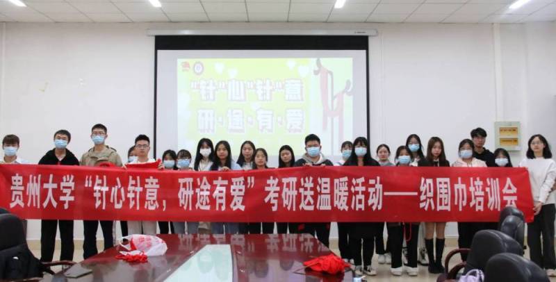 据了解,“针”心“针”意暖心围巾为贵州大学师生历时一个多月编织而成。编织围巾活动中,全校师生踊跃报名参加。活动前,进行了针织培训。贵州大学党委副书记令狐彩桃老师也编织了一条。参加编织的师生中,有人织了好几条,有人织了一条,有些是几人合织一条,更有师生自发购买针线编织围巾,一针一线钩织出对考研学子的深深祝福。