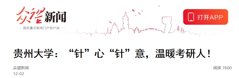 日前,贵阳气温骤降。距离2023年研究生考试只剩下不到一个月时间,在这关键时刻,贵州大学为备考学子送上师生的温暖与关爱。