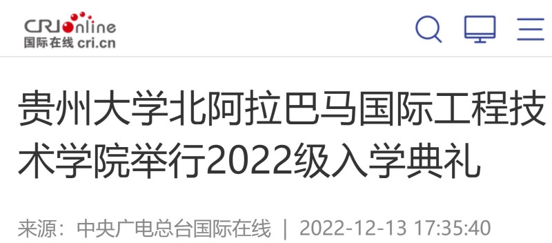 12月13日,贵州大学北阿拉巴马国际工程技术学院举行2022级入学典礼,以“线上线下”相结合的方式进行,视频连线美国北阿拉巴马大学。