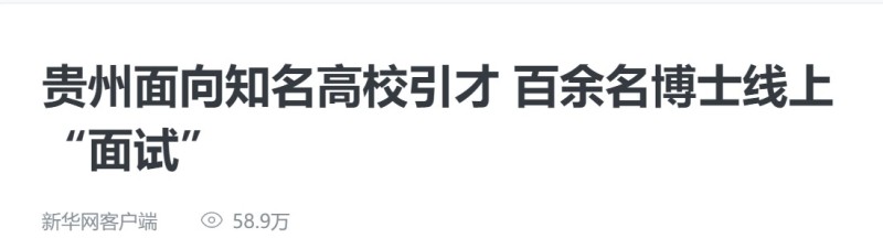 为落实贵州省引才、育才、用才、留才“四大工程”,从11月初,中共贵州省委组织部、贵州省人力资源和社会保障厅组织开展了2022年赴知名高校线上引才活动。当天的博士见面会旨在为贵州省企事业单位搭建高质量校企合作交流平台,主要对针教育和医疗卫生领域,定向邀约清华大学、北京大学、四川大学、中南大学等多所知名高校中有求职需求且对贵州省企事业单位有意向的博士,通过线上视频方式,实现用人单位和博士间双向、精准、高效的洽谈交流。