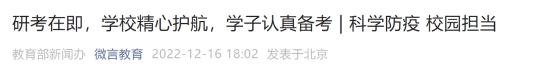 研考在即,面对防疫新阶段,各高校积极采取措施,精心护学护考,努力为学子营造安全、便利的学习环境,学子们认真复习、积极备考,校园里随处可见勤奋的身影。跟教育小微一起到这些高校看看——