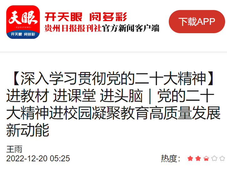 连日来,贵州各地各学校掀起学习宣传贯彻党的二十大精神热潮,通过多种形式开展宣讲,积极推动党的二十大精神进教材、进课堂、进头脑。