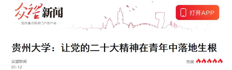 截至1月12日,贵州大学团委官微“贵大青年”融媒体宣讲专栏——“青春向党”已推出3期。大学生宣讲团以青年喜闻乐见的短视频形式,运用“青言青语”“网言网语”准确生动地宣传党的二十大精神,推动党的二十大精神进头脑。