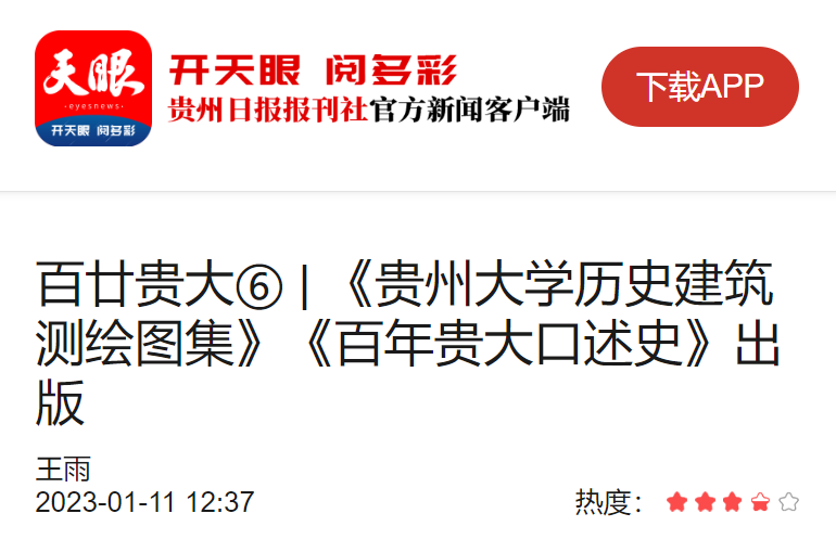 1月11日,记者从贵州大学获悉,近日由贵州大学出版社组织编写的《贵州大学历史建筑测绘图集》、《百年贵大口述史》在贵州大学出版社正式出版。
