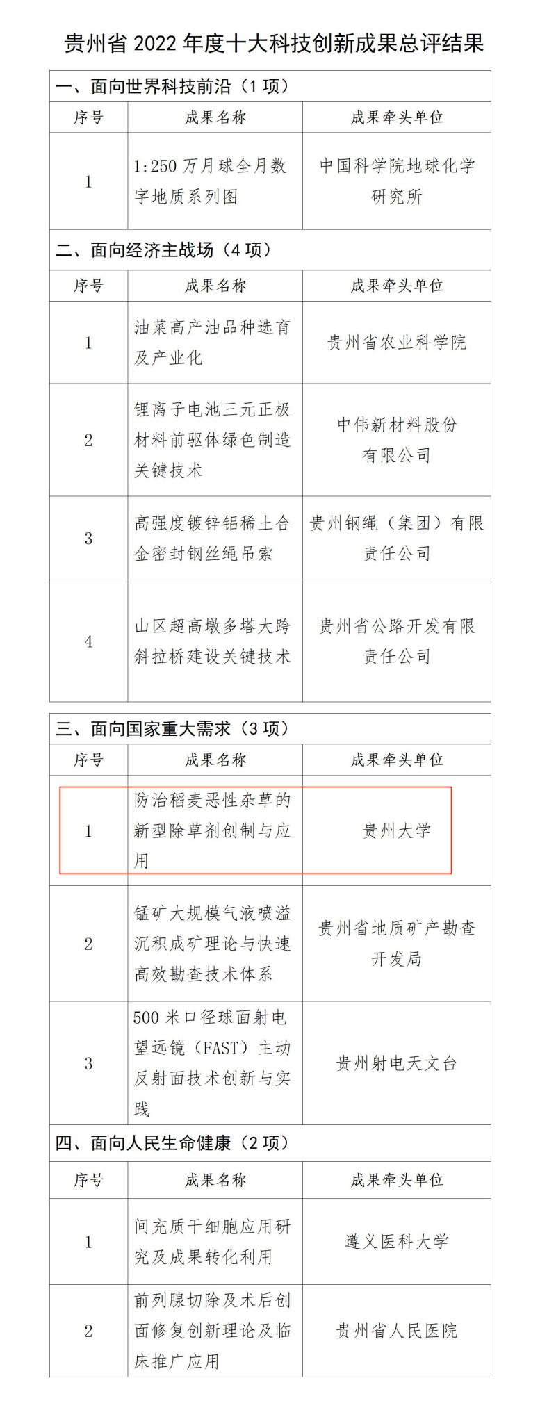 1月29日,记者从省科技厅了解到,贵州省2022年度十大科技创新成果评选总评结果正在公示。此次评选结果坚持“四个面向”、坚持科学精神、坚持与群众生产生活紧密结合的原则,旨在深入贯彻党的二十大精神,充分展示贵州高校院所和企业取得的重大科技创新成果,进一步激励广大科技人员为实现科技自立自强和建设特色科技强省而奋斗。