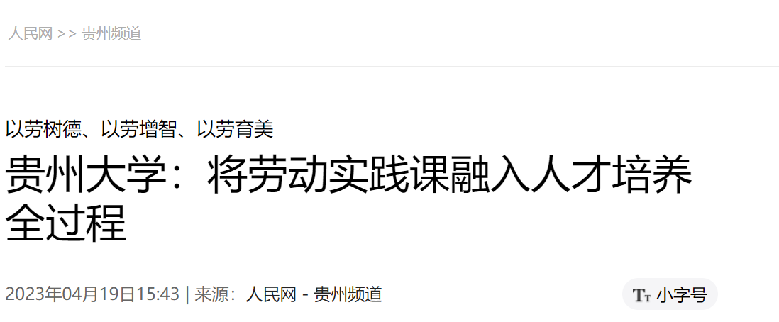 立德树人要融入思想道德教育、文化知识教育、社会实践教育等各环节。如何更好融入?贵州大学将德育贯穿整个劳动实践课程。