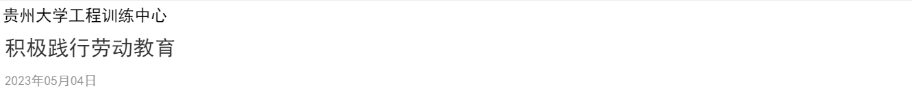 贵州大学作为教育部“三全育人”综合改革试点单位,近年来在加强学生劳动教育方面积极开展工作,让学生亲历劳动、研究劳动、主动劳动,弘扬劳动精神。其中,贵州大学工程训练中心设立具有鲜明劳动教育特色的工程训练系列课程,有力推动劳动教育有序有效开展,每年覆盖全校各专业本科生4000余名。