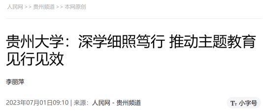 殷殷嘱托催人奋进,勇毅前行谱写新篇。当前,贵州大学全面深入“学”、勤恳笃志“思”、融会贯通“做”、知行合一“用”,推进主题教育高质量开展和学校高质量发展双向赋能,奋力答好“强国建设、教育何为”时代课题,为奋力谱写多彩贵州现代化建设新篇章贡献力量。