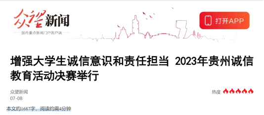 7月7日,2023年贵州省诚信教育活动决赛暨颁奖仪式举行。该活动由贵州省教育厅、中国人民银行贵阳中心支行、国家开发银行贵州省分行主办,贵州大学承办。