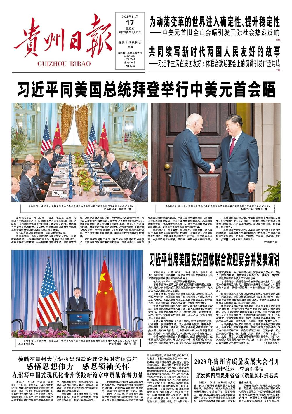 11月16日,省委书记、省人大常委会主任徐麟到贵州大学讲授思想政治理论课,寄语广大贵州青年深刻领悟习近平新时代中国特色社会主义思想,深入学习领会习近平总书记关于中国式现代化的重要论述和对贵州工作重要指示精神,感悟思想伟力、感恩领袖关怀,勇做走在时代前列的奋进者、开拓者、奉献者,在谱写中国式现代化贵州实践新篇章中贡献青春力量。