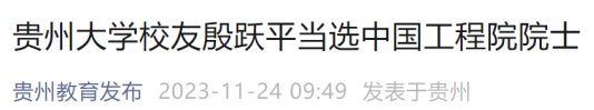 11月22日,中国工程院2023年院士增选当选院士名单公布,共选举产生74位中国工程院院士,其中,土木、水利与建筑工程学部新增院士8人,贵州大学资源与环境工程学院水文地质与工程地质专业1977级校友殷跃平当选。