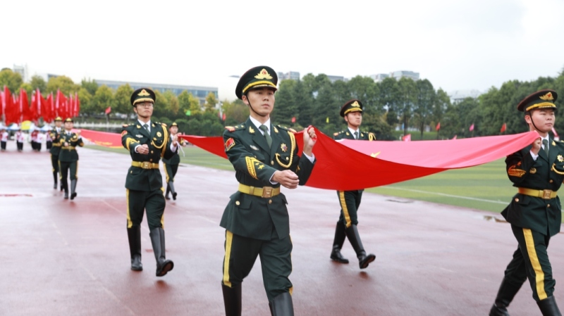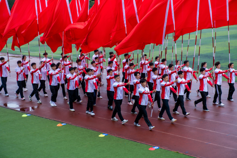 体育节在庄严嘹亮的国歌声中拉开序幕。现场旌旗猎猎、欢呼声震耳,各具特色的代表方阵神采飞扬、整齐排列。
