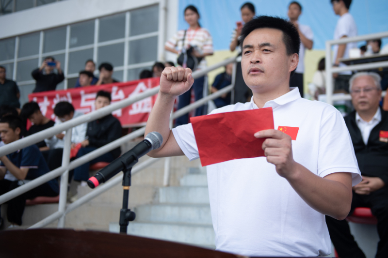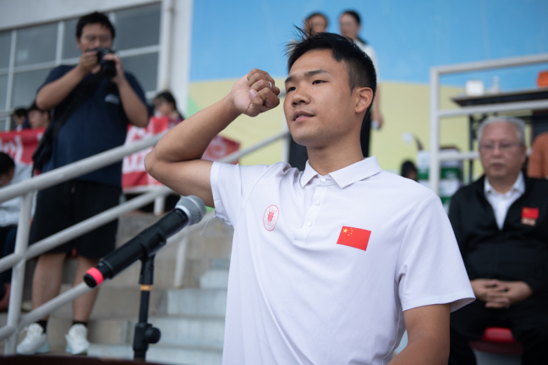 裁判员代表郑志兵、运动员代表刘熠依次上台宣誓。