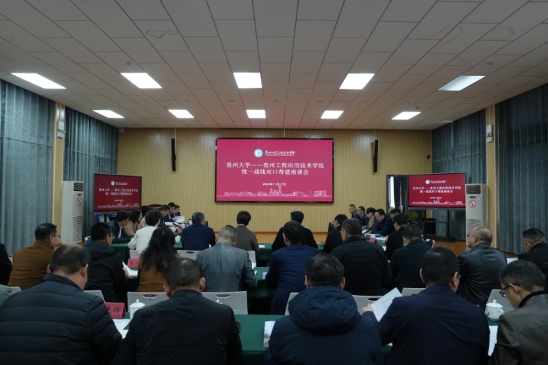 贵大新闻网讯(文字/庞爱忠 摄影/贵工程 王炯)11月17日,贵州大学-贵州工程应用技术学院统一战线对口帮建座谈会在贵州工程应用技术学院召开。贵州大学党委书记杨未、副校长陈祥盛,贵州工程应用技术学院党委书记熊星、校长张嗣杰等校领导以及两校有关单位负责同志参加会议。
