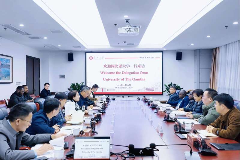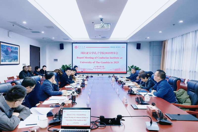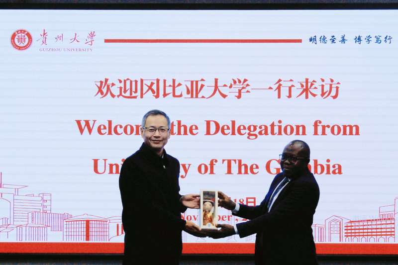 贵大新闻网讯(实习记者 曾兰乔)11月18日上午,冈比亚大学一行交流座谈会暨冈比亚大学孔子学院2025年理事会在西校区举行。冈比亚大学校长赫伯特·塞缪尔·鲁滨逊、贵州大学副校长王锦荣出席会议。冈比亚大学孔子学院、贵州大学国际交流与合作处、资源与环境工程学院、酿酒与食品工程学院、国际教育学院、外国语学院、农学院、化学与化工学院等相关单位负责人参加会议。