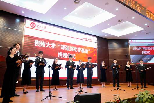 On the morning of March 21, a donation ceremony for the "Zheng Qiang Scholarship Fund" was held in the lecture hall of the Xianzheng Building on West Campus. Prof. Zheng Qiang, the former GZU president and honorary director of the fund’s management committee, leaders from the Guizhou provincial government and Guizhou University, and about 300 faculty and student delegates attended the ceremony. Vice President Li Junqi presided over the ceremony.