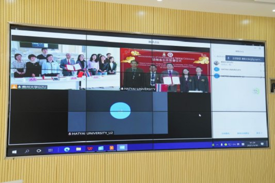 It is reported that Hatyai University is the first private university in southern Thailand and is the fastest growing Thai university in its country. It was listed as the second “green university” in southern Thailand in according to the 2020UI GreenMetric World University Rankings. Upon the signing of this memorandum of understanding, Guizhou University will work with Hatyai University in the exchanges of faculty, students, and scientific research to encourage comprehensive cooperation.