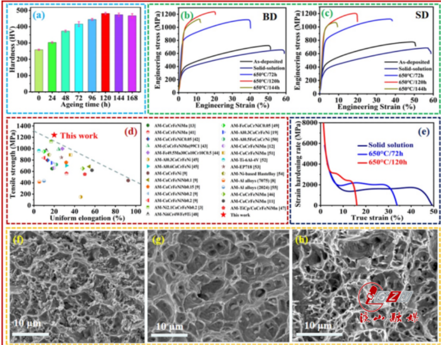 Recently, Prof. Liu Qibin's team published a research result entitled “A Novel D022 Precipitation-hardened Ni2.1CoCrFe0.5Nb0.2 High Entropy Alloy with Outstanding Tensile Properties by Additive Manufacturing” in the SCI 1 top journal Virtual and Physical Prototyping (IF=10.96) in the field of additive manufacturing. The first author of the research is Wang Fangping, a 2021 PhD student in the School of Materials and Metallurgy of Guizhou University, and the corresponding author is professor Liu Qibin. The work was supervised by prof. Dong Chuang of Dalian University of Technology and Guo Yaxiong, distinguished professor of Guizhou University.