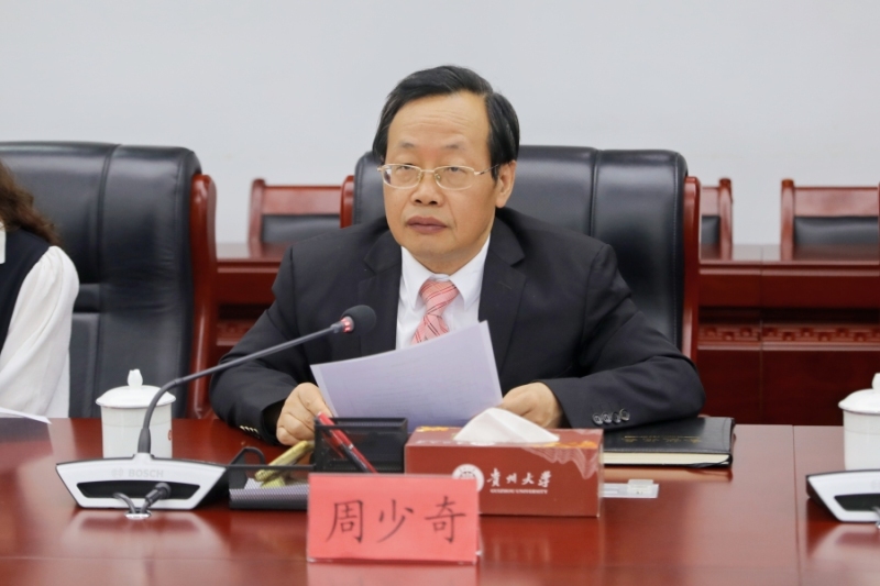 On May 21, on the occasion of International Tea Day, Dr. Keerthi Mohotti, Director of the Tea Research Institute of Sri Lanka, and Professor Sarath Kodithuwakku, Dean of the College of Agriculture at the University of Peradeniya, paid a visit to Guizhou University. The following day, a symposium was held with Zhou Shaoqi, Vice President of GZU, heads of relevant departments, and professors from the State Key Laboratory of Green Pesticides in attendance. The primary focus of the symposium was to deliberate on the establishment of a China-Sri Lanka joint laboratory focused on green pest control technologies for tea plant under the "Belt and Road" initiative. Additionally, discussions were held regarding opportunities for academic and student exchanges.