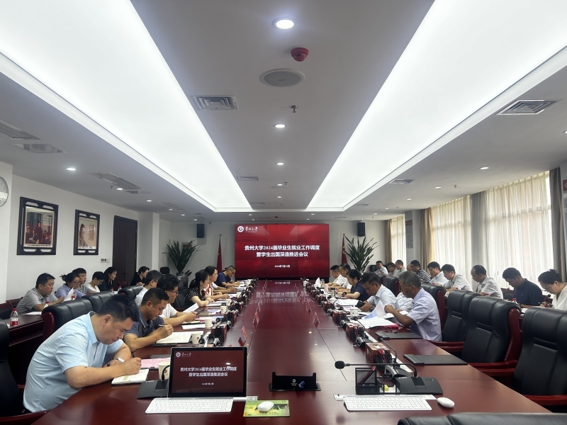On July 23, Guizhou University (GZU) convened a meeting to discuss employment coordination and promote students’ overseas study opportunities. The university’s leaders, including Yang Wei, Song Bao’an, Tang Benwen, Zhang Dalin, Chen Xiangsheng, and Wang Jinrong, attended the meeting, alongside college deans, secretaries, and heads of relevant administrative departments.