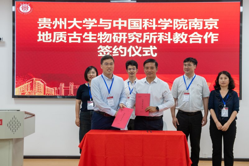 The Guizhou Provincial Key Laboratory of Paleontology and Paleoenvironment was officially unveiled at the meeting, and a cooperation agreement on teaching and research was signed between GZU and the Nanjing Institute of Geology and Paleontology, CAS. The laboratory’s Academic Committee and management team were also announced, and letters of appointment were presented to the Director, members of the Academic Committee, and the laboratory’s director and deputy directors. Director Yang Xinglian delivered a report outlining the laboratory’s basic profile, foundations, and development goals.