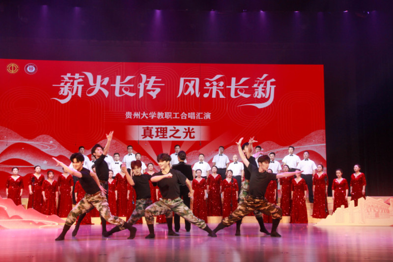 On July 9th, Guizhou University hosted a faculty and staff choir performance. The event commemorated the 90th anniversary of the Zunyi Conference, the 80th anniversary of the Victory of the Chinese People's War of Resistance Against Japanese Aggression and the World Anti-Fascist War, and the centennial of the All-China Federation of Trade Unions. Secretary of the University Party Committee, Yang Wei, Deputy Secretary, Peng Jie, and Vice President Zhang Dalin were in attendance.