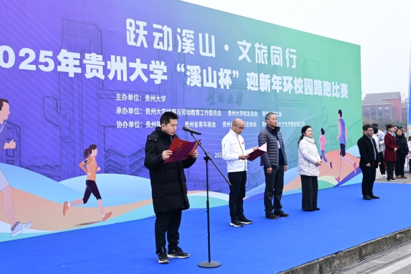 On December 28, Yuehu Square on Guizhou University’s West Campus was adorned with colorful flags and filled with a lively atmosphere as the Vibrant Xishan, Cultural Tourism Together – 2025 GZU "Xishan Cup" New Year Campus Run was held. University leaders Yang Wei, Chen Xiangsheng, Wu Pan, Wang Jinrong, Chen Yanbo, along with over a hundred alumni representatives from across the country, faculty, and staff, participated in the event. The event was hosted by GZU, co-organized by the Sports and Labor Education Committee, Alumni Association, and Labor Union, and co-sponsored by organizations such as the Guizhou International Chamber of Commerce, Guizhou Youth Chamber of Commerce, and Guizhou Exhibition Industry Association.