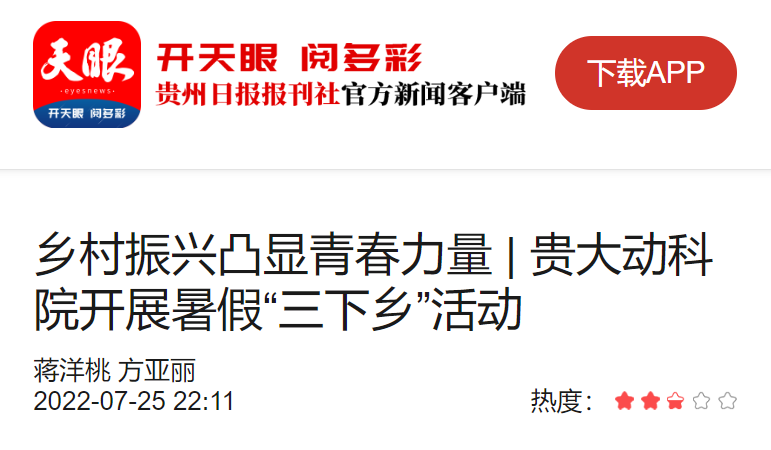 天眼新闻客户端:乡村振兴凸显青春力量 | 贵大动科院开展暑假“三下乡”活动