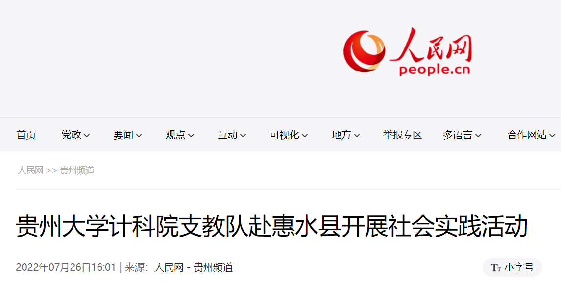 人民网-贵州频道:贵州大学计科院支教队赴惠水县开展社会实践活动