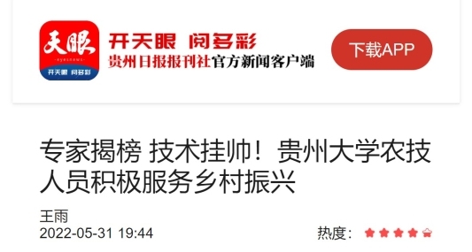 天眼新闻客户端:专家揭榜 技术挂帅!贵州大学农技人员积极服务乡村振兴