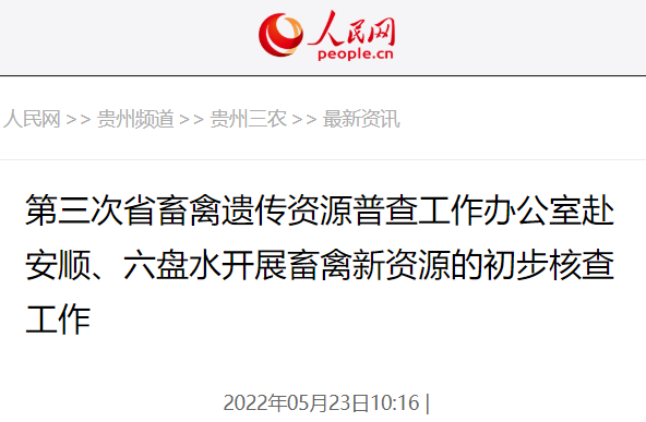 人民网-贵州频道:第三次省畜禽遗传资源普查工作办公室赴安顺、六盘水开展畜禽新资源的初步核查工作