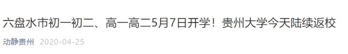 动静贵州:六盘水市初一初二、高一高二5月7日开学!贵州大学今天陆续返校